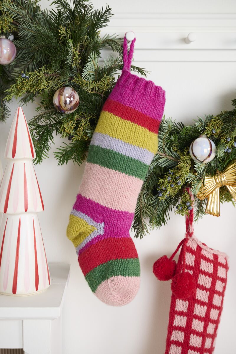 The Bright & Merry Stocking combines vibrant colors, artisanal craftsmanship, and festive details for a joyful holiday display. Each stocking is a charming statement piece for your mantle or wall, ready to welcome the season in style.