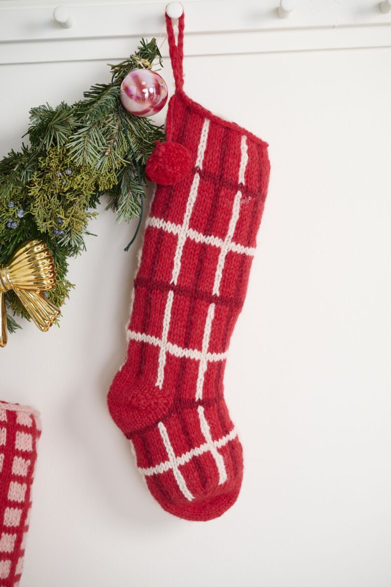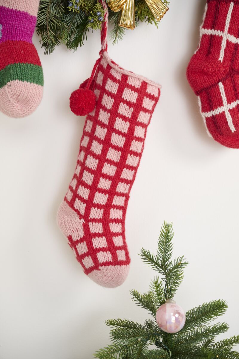 Add a playful pop of color to your holiday décor with the Bright & Merry Stocking. Hand-knit by skilled artisans in Nepal, this festive stocking is available in three cheerful designs: pink with a red grid, red with pink and dark red grid, and multicolor with chunky horizontal stripes in pink, red, citron, green, and blue-grey. The pink and red designs feature a small red pompom loop for easy hanging, while the multicolor option includes a simple knitted loop. These vibrant stockings are perfect for filling with goodies from Santa or styling together for a bright, joyful display.