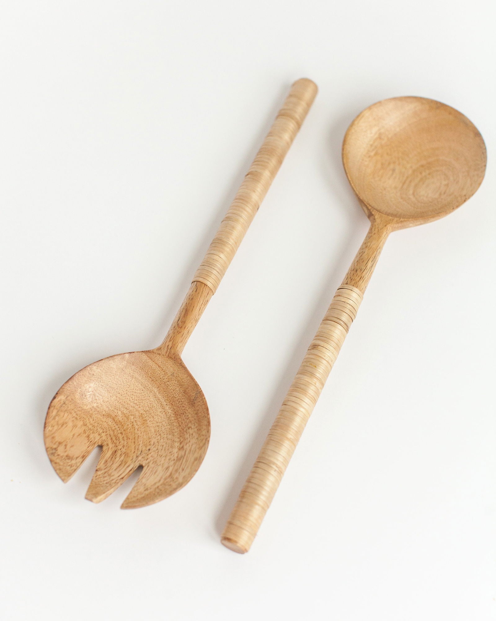 Serve in Style with the RattanWeave Mango Wood Salad Servers